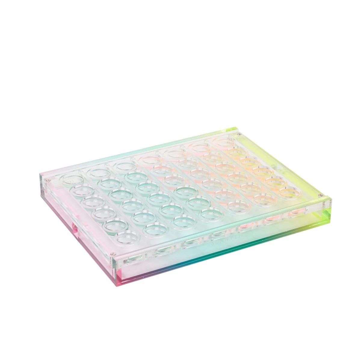 Give yourself a competitive edge with this luxurious rendition of a popular classic. Our stunningly transparent Lucite game sets are a must-have for any lover of retro style and kaleidoscopic colour, designed to be just as beautiful out on display as during a game. With two-toned playing chips and a rainbow, ombre base, the Aurora 4 in a row set will bring a sophisticated pop of colour to any home.